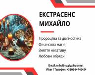Михайло - досвідчений маг і екстрасенс, що володіє глибинним знанням езотерики, магії та енергетики людини. Його робота заснована на реальній практиці, сильних ритуалах і повазі до сили долі. Він не дає порожніх обіцянок, але береться за справу там, де дійсно може допомогти.