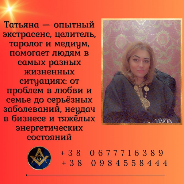 Жизнь часто ставит перед нами непростые задачи — проблемы в отношениях, здоровье, работе или деньгах. Бывает, что всё идёт не так, и кажется, будто кто-то или что-то мешает. В такие моменты важно получить поддержку и помощь. Потомственная ясновидящая и целительница Татьяна уже много лет помогает людям разобраться в сложных ситуациях, восстановить силы и вернуть гармонию в жизнь. Она работает с энергией, природными методами и помогает не только лично в Киеве, но и дистанционно — с клиентами из разных стран.