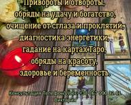 Расклады на картах Таро, гадание на рунах, диагностика энергетики, ответы на кармические вопросы, помощь в понимании будущих событий.