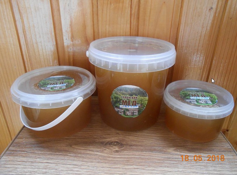 Травневий мед. Велике різноманіття квітів (верба, первоцвіт, кульбаба, вишня, черешня, яблуня, груша та ін.) зумовлює його багатий склад на вітаміни та мікроелементи. Ціна: 1 л. - 300 грн.; 500 ml - 160 грн.; 200 ml (скло) – 90 грн.